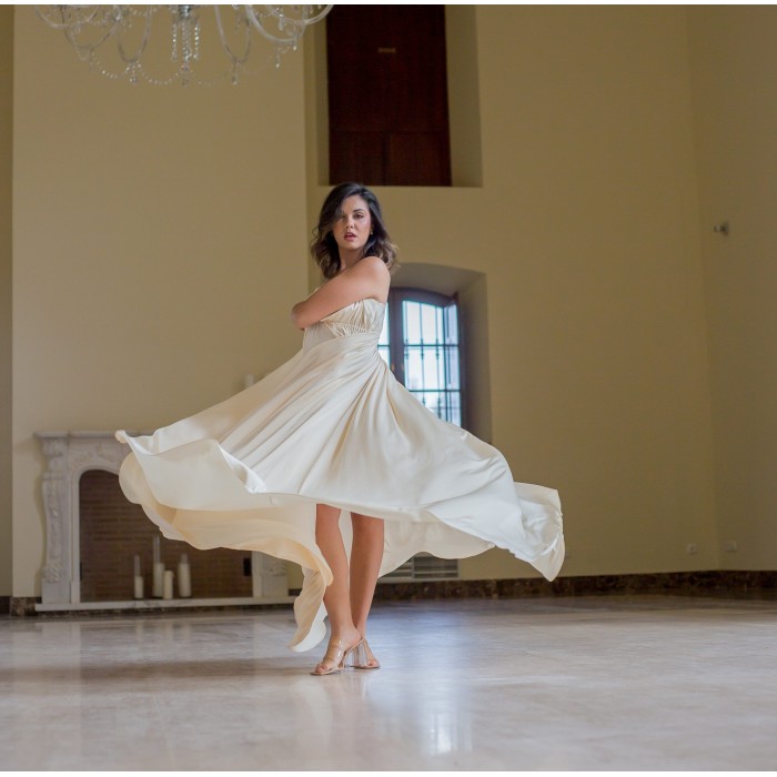 Suitable for slightly more formal occasions like dinners and cocktail parties, where the light casts a natural sheen on the dress, easily becoming the center of attention. It's also perfect as a bridal gown for a pre-wedding wedding, perfectly embracing a romantic atmosphere while remaining convenient and adding an elegant touch to the occasion.
