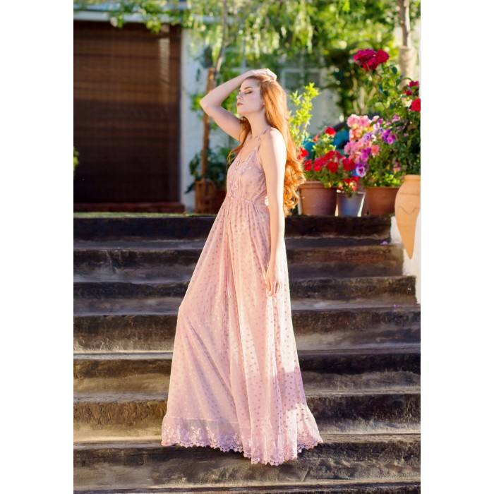 Perfect for: An alfresco dinner in a spring garden, where the hazy tulle and polka dots create a dreamy, moonlit vibe, creating a sensual and romantic atmosphere. Or, a summer evening stroll by the sea, where the sea breeze sways the dress, blending with the sunset glow, perfect for a relaxed date or vacation.